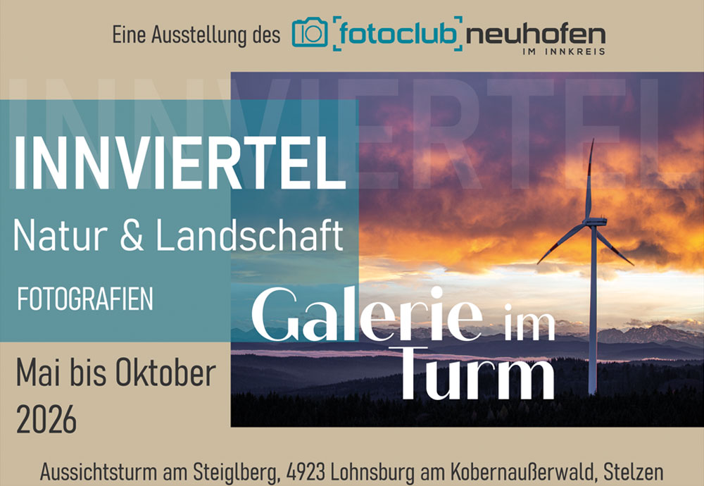 Das Innviertel - seine Natur und seine Landschaft im Bild. Festgehalten von Fotografen des Fotoclubs Neuhofen im Innkreis. Der Turm hat 24/7 geöffnet. Eintritt mit Münzeinwurf € 2,-